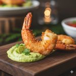 (x10)A crispy panko-crusted prawn skewer served with a smooth and creamy avocado-infused aioli. A delightful blend of seafood crunch and tropical richness.