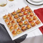 (x1)- Brioche with beef, cheddar cheese and tomato sauce with smoked paprika, 10 pcs. - Brioche with smoked salmon and chili mayonnaise sauce, 10 pcs. - Brioche with turkey, cheddar cheese and Maxi-Burger sauce, 10 pcs.