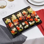 Enjoy individual Gastro Box eco friendly box buffet meals for your small or digital event. Each guest receives their own gift style personal Appetizer, Entree, and Dessert boxes.